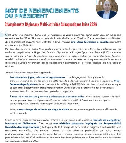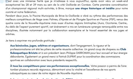 LA FÉDÉRATION FRANÇAISE D'ÉTUDES ET DE SPORTS SOUS-MARINS - COMITÉ SUBAQUATIQUE NOUVELLE-AQUITAINE