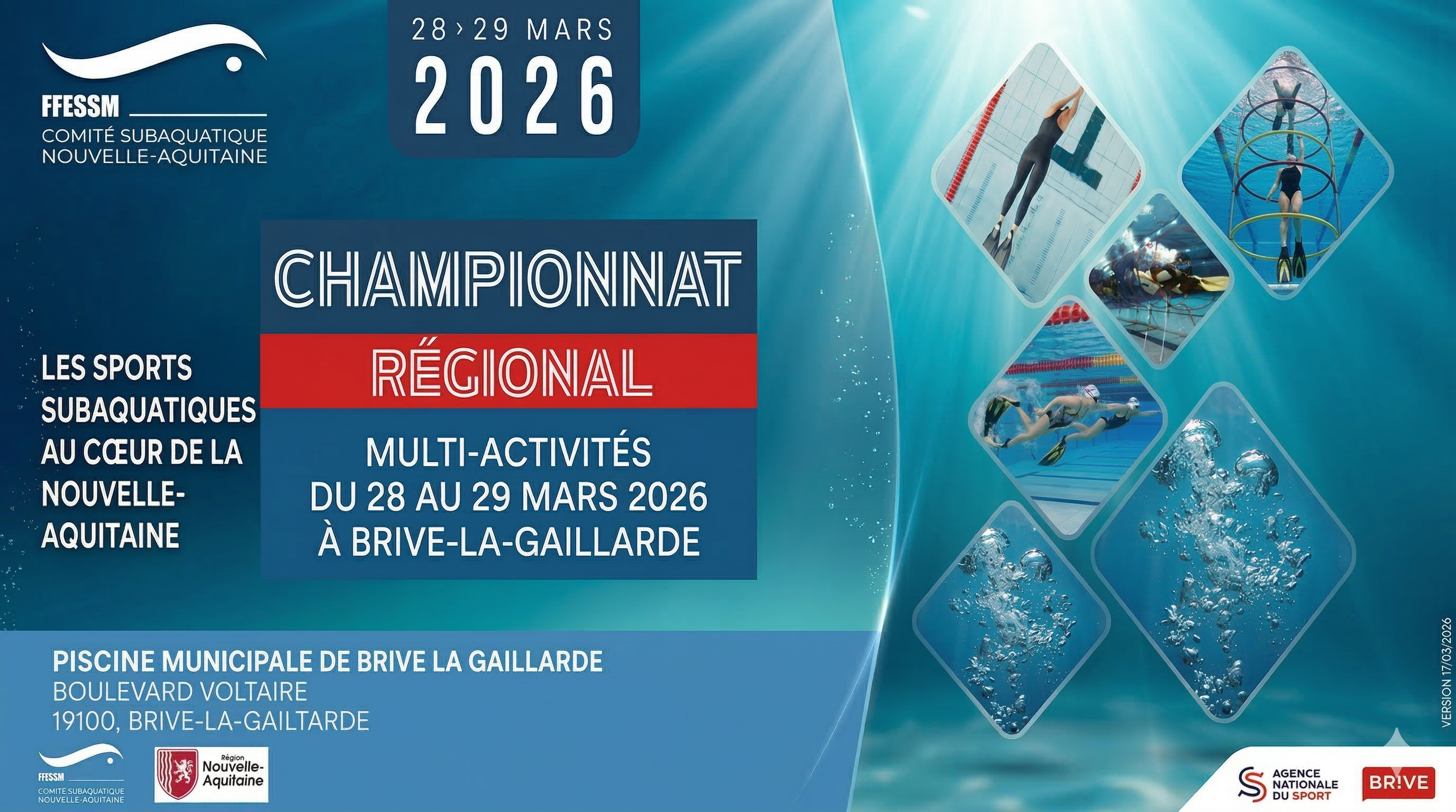 Le Comité Subaquatique Nouvelle-Aquitaine innove les 28 et 29 mars 2026 avec la toute première édition de son championnat régional multi-activités à la piscine municipale de Brive-la-Gaillarde. Cet événement exceptionnel rassemble trois disciplines sportives: l'Apnée, la Plongée Sportive en Piscine (PSP) et la Nage avec Palmes.